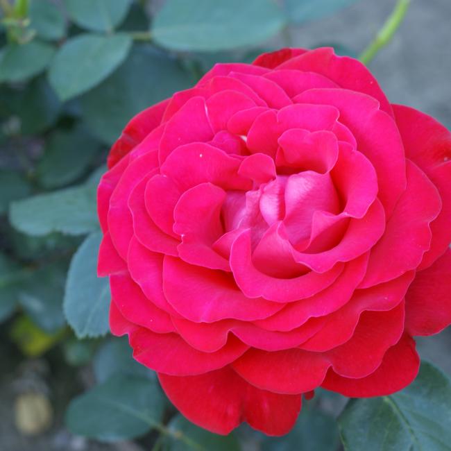 Red. Moderate fragrance. Double (17-25 petals) bloom form. Blooms in flushes throughout the season.